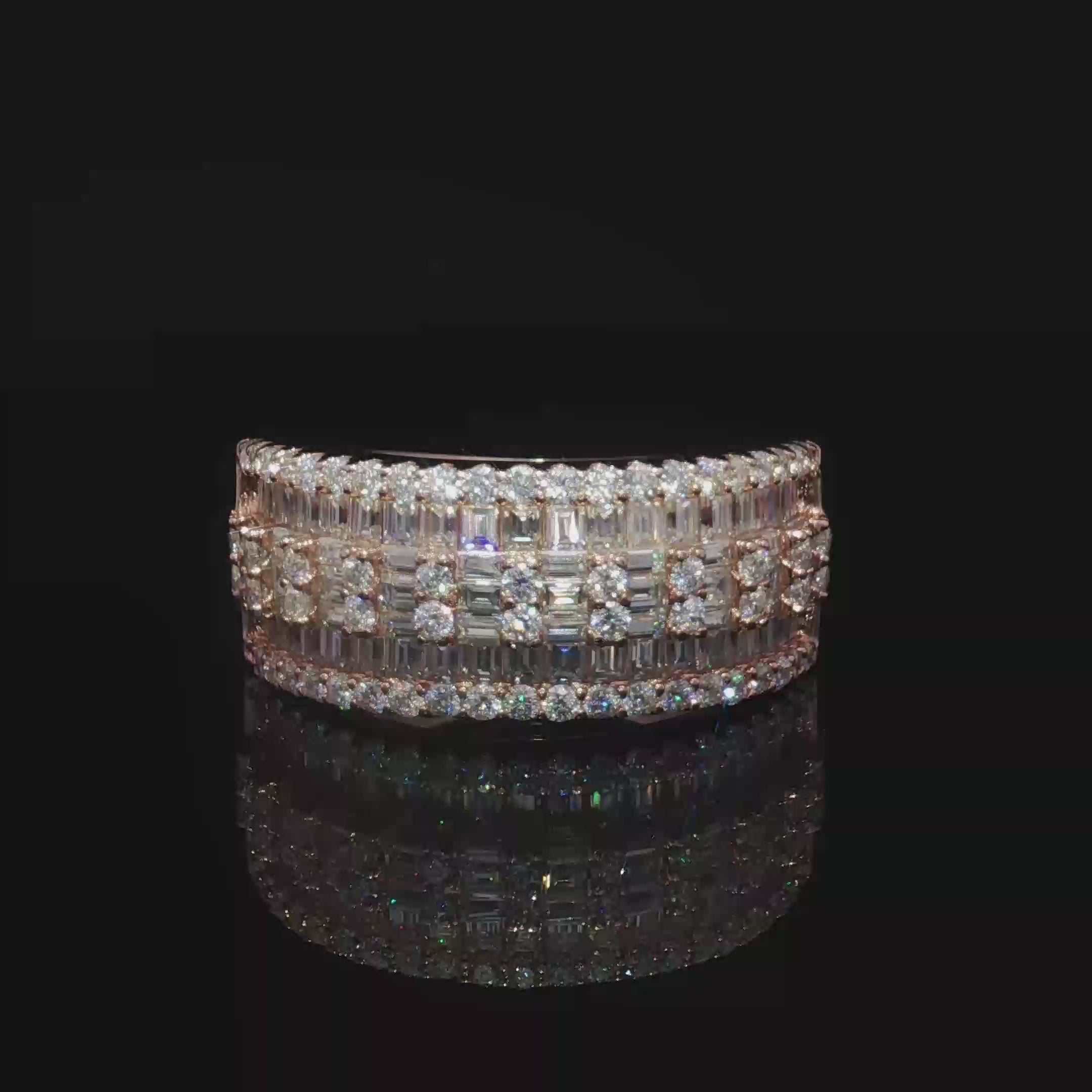 | Design | Modern Band Design with Emerald-Cut Moissanite Accents |